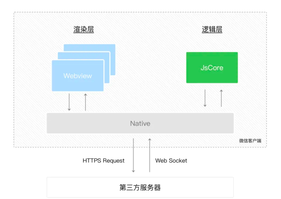宿主APP作为容器:微信等宿主APP内置了一个混合渲染引擎,集成了WebView(渲染视图层)和独立的JavaScript引擎(如JSCore、V8)运行逻辑层,形成一个隔离的沙箱环境。